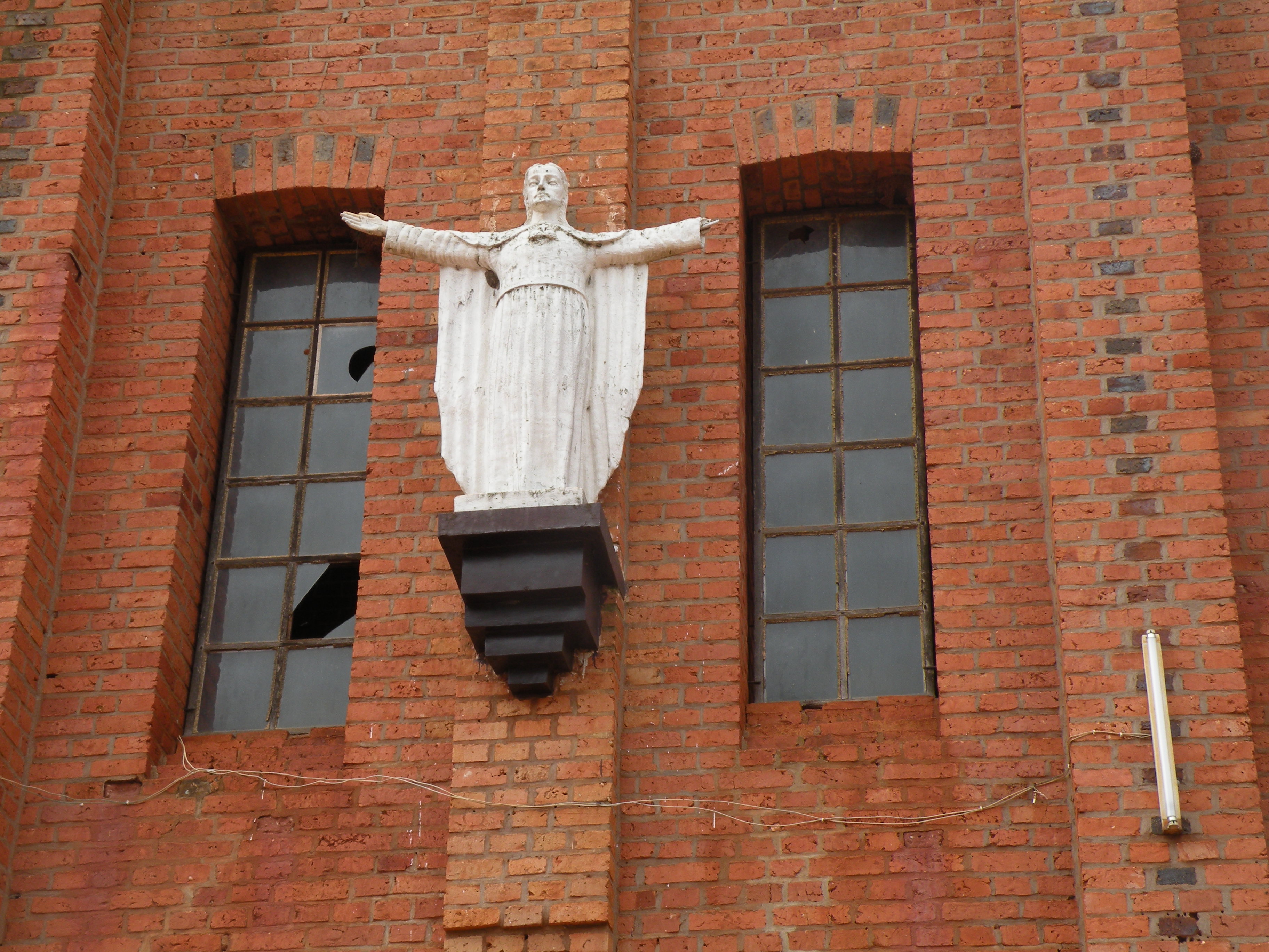 At the end of the room there was a Christ figure, a clay sculpture. The arms had been cut off by those who said that the image resembled a Tutsi. Similarly, the large image of Jesus at the front of the outside of the church had been shot at because the genocidaires said Jesus is a friend of Tutsis. This was all quite shocking to hear and see.