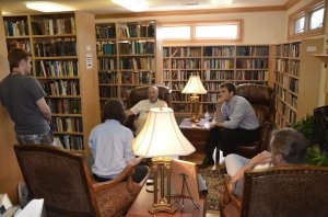 Some of the best parts of Mises University were the conversations that I had with fellow students outside of the intense periods of scheduled lectures. One evening I had several particularly good conversations about Catholicism. (I am meeting so many young converts!)  With a small group I discussed Plato, Aristotle, Augustine, Aquinas, Machiavelli, Rousseau, Hobbes, Dostoyevsky, Tocqueville, Nietzsche, Burke, Mises, Fulton Sheen, Russell Kirk, Leo Strauss, and others over the course of the evening.
